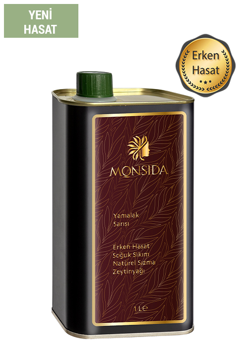 Soğuk sıkım yöntemiyle elde edilen Monsida Yamalak Sarısı Erken Hasat Soğuk Sıkım Natürel Sızma Zeytinyağı; %0.11 serbest yağ asitlerine, yüksek polifenol değerine, yakıcı tada, taze çimen kokusuna, yeşil domates ve elma aromasına sahiptir.