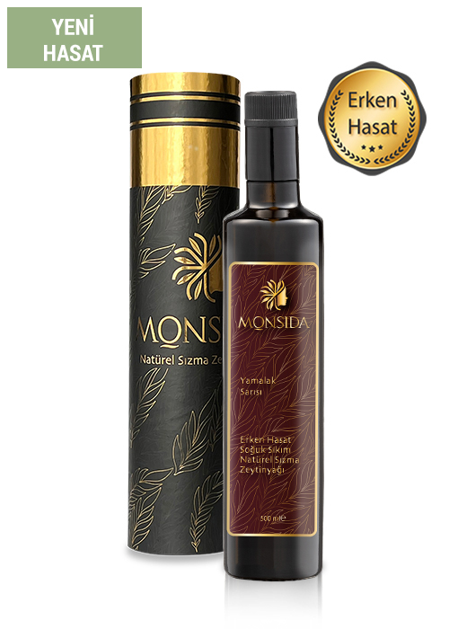 Soğuk sıkım yöntemiyle elde edilen Monsida Yamalak Sarısı Erken Hasat Soğuk Sıkım Natürel Sızma Zeytinyağı; %0.11 serbest yağ asitlerine, yüksek polifenol değerine, yakıcı tada, taze çimen kokusuna, yeşil domates ve elma aromasına sahiptir.